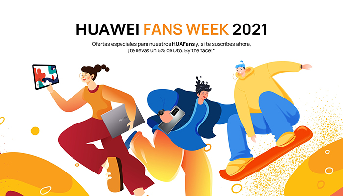 Huawei quiere seguir premiando la lealtad y fidelidad de sus usuarios, y es por ello que lanza HUAWEI Fans Week, una forma de dar las gracias a todas esas personas que confían en la marca día tras día. Del 12 al 23 de mayo los clientes de Huawei podrán disfrutar de ofertas especiales en productos de diversas categorías – telefonía, portátiles o wearables – a través de Huawei Store. Además, todos aquellos usuarios que se suscriban por primera vez a la Newsletter de la tienda online oficial de Huawei entre esas fechas obtendrán un código descuento del 5% en productos HUAWEI, canjeable hasta el 30 de junio.
