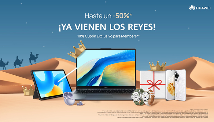 Huawei Consumer Business Group (CBG) España se complace en anunciar la llegada de sus majestades los Reyes, que llegan desde Oriente con una enorme cantidad de descuentos en HUAWEI Store, una oportunidad única para renovar la tecnología en este inicio de año. Hasta el 7 de enero, los clientes podrán disfrutar de descuentos de hasta el 50 % en 10 de los dispositivos más icónicos de Huawei.