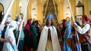 La nueva Comendadora, María Vicente, saliendo de la iglesia