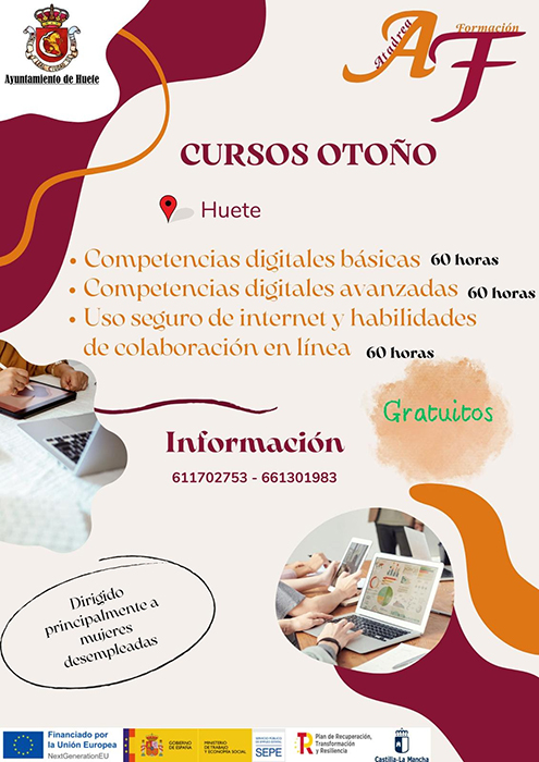 El Ayuntamiento de Huete, en colaboración con Atadrea Formación y con financiación de la Unión Europea a través del Plan de Recuperación, Transformación y Resiliencia, ha lanzado una nueva oferta formativa para este otoño dirigida principalmente a mujeres desempleadas.