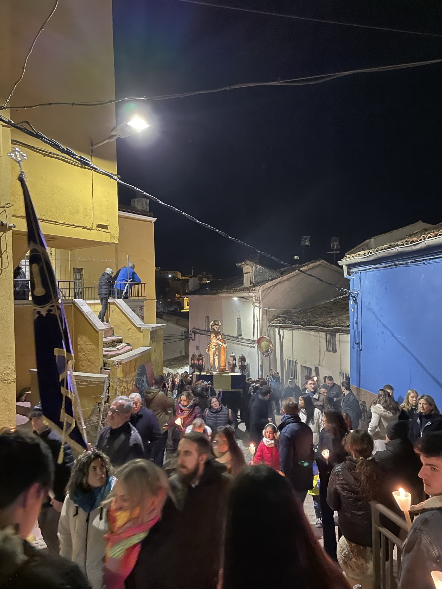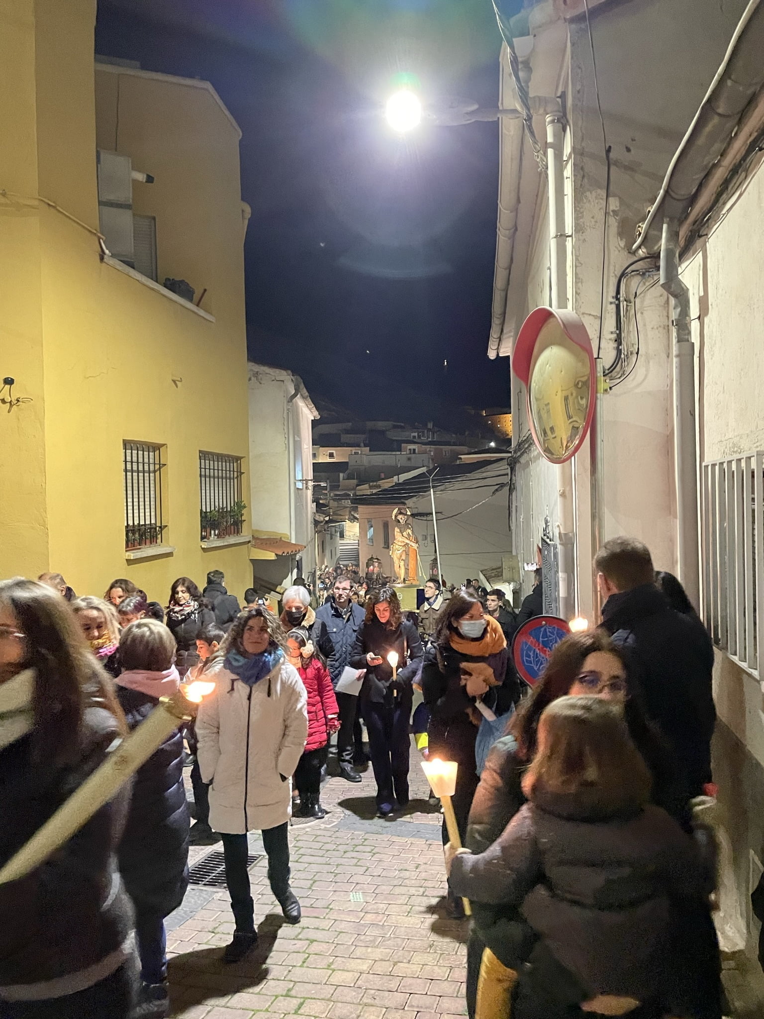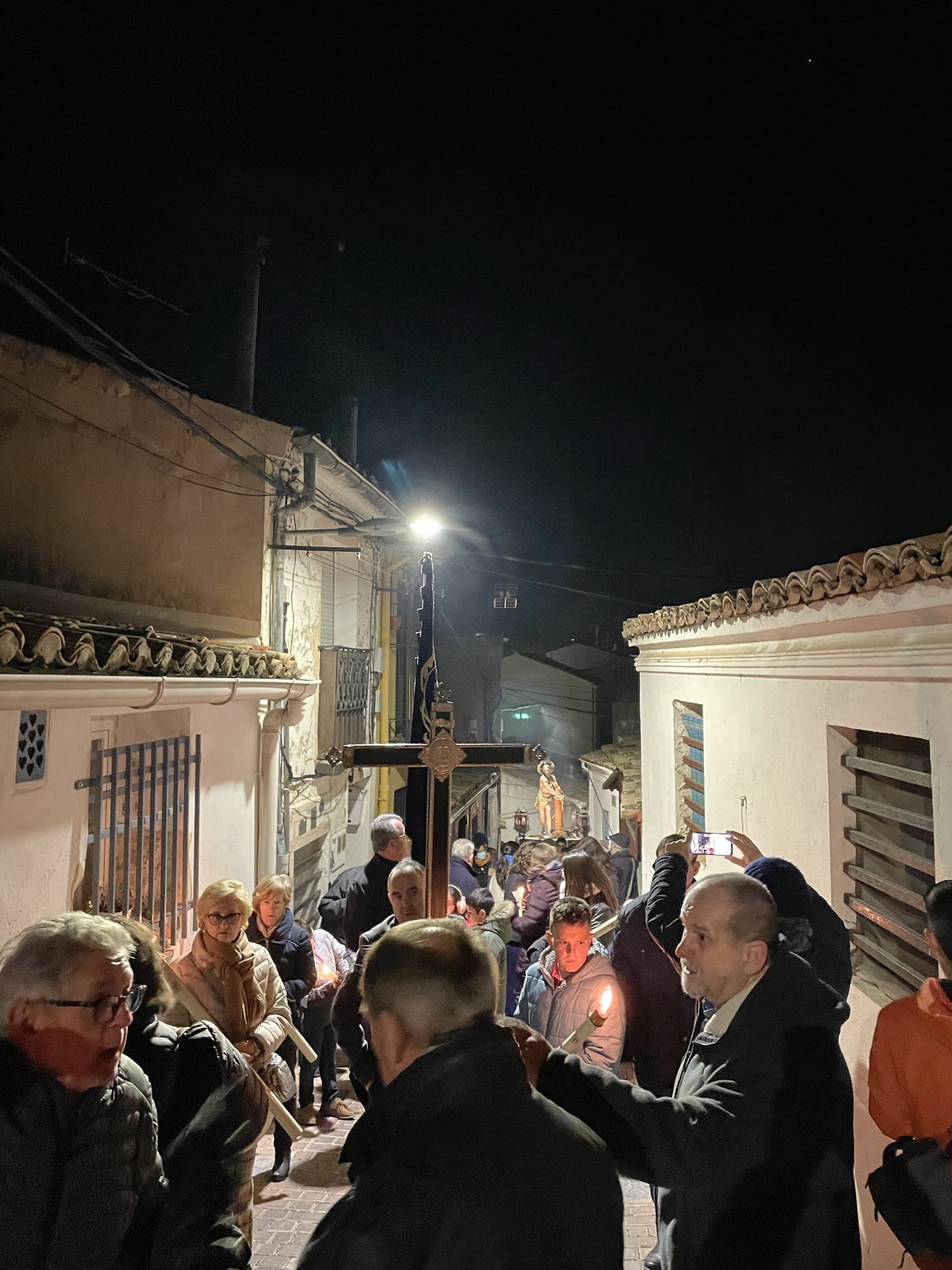 Un año más subió y bajó, El Amarrado, las calles de San Antón en un Vía Crucis presidido por don Ángel García, párroco de la Virgen de la Luz.