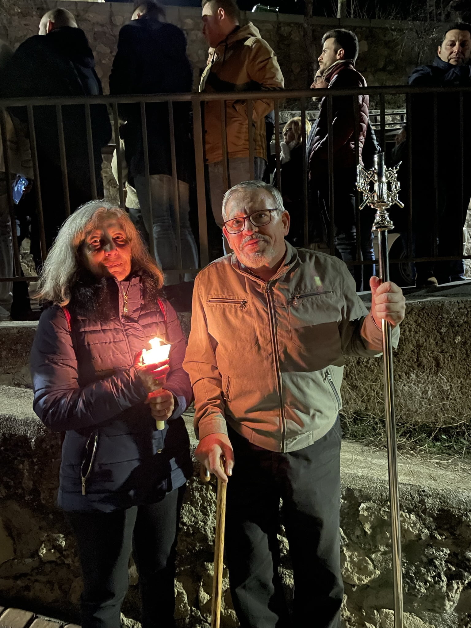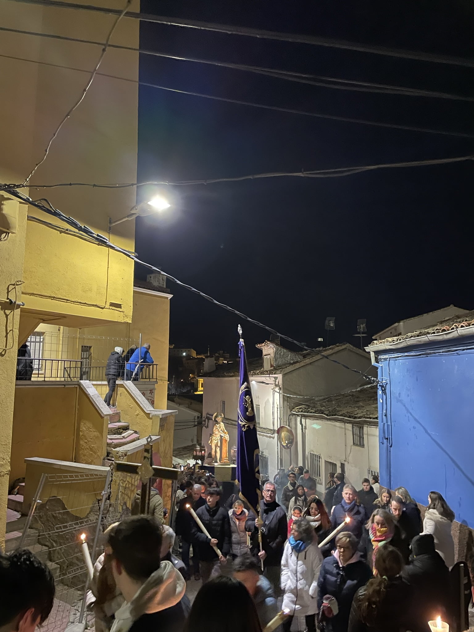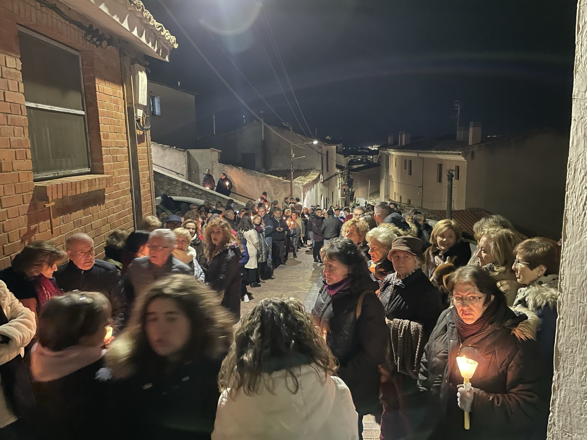 Un año más subió y bajó, El Amarrado, las calles de San Antón en un Vía Crucis presidido por don Ángel García, párroco de la Virgen de la Luz.