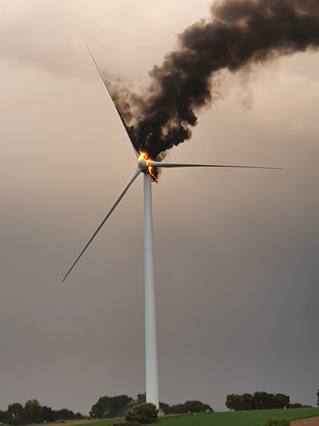 La tormenta de ayer en la Alcarria conquense dejó algo más que 15 litros por metro cuadrado….. Y es que un rayo podría haber provocado un incendio en uno de los molinos del parque eólico de Villalba del Rey, situado en el monte de la localidad.