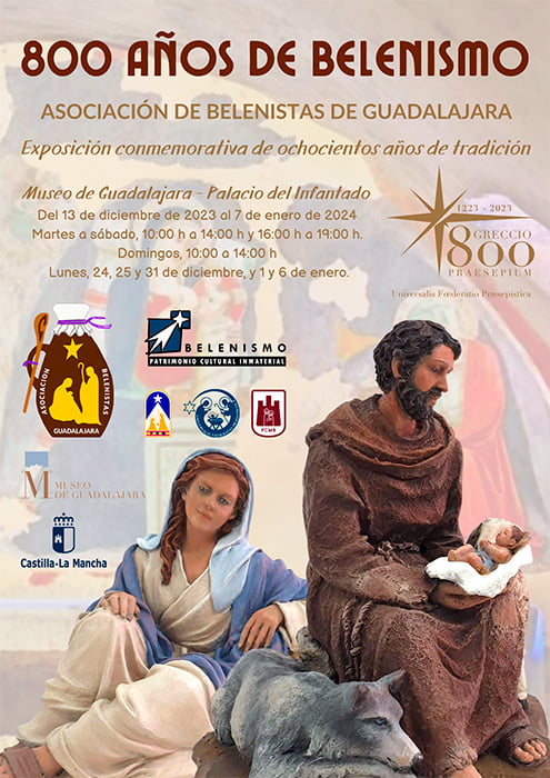 En la tarde de este martes 12 de diciembre, a las 20:30 horas, se inaugura en la Sala Azul del Museo de Guadalajara la exposición 800 años de Belenismo. Una muestra singular y didáctica que busca acercar al público general lo que significa el belenismo, Manifestación Representativa del Patrimonio Cultural Inmaterial de España desde 2022, y que este 2023 cumple 800 años de historia.