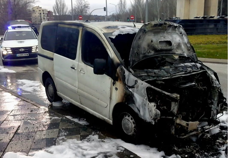 La Policía Local de Cuenca ha intervenido esta mañana en el incendio de una furgoneta en la glorieta de Víctimas del Terrorismo. Afortunadamente, el suceso no ha dejado heridos, según ha confirmado el cuerpo policial a través de sus redes sociales.