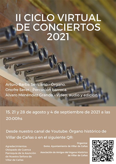Podrá seguirse en el canal de Youtube de la Asociación de Amigos del Órgano Histórico de Villar de Cañas, donde se puede disfrutar de los cuatro conciertos del ciclo de 2020: