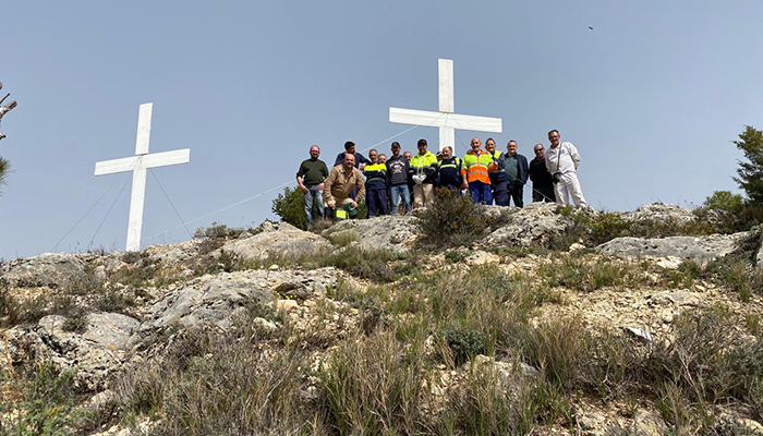 El servicio de obras del Ayuntamiento de Cuenca ha instalado este martes las tradicionales tres cruces que lucen en el Cerro de la Majestad.