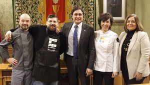 El alcalde de Cuenca, Ángel Mariscal, junto a la teniente de alcalde de Cultura y Turismo, Marta Segarra, ha recibido en el Salón de Plenos a Jesús Segura, del restaurante Trivio que recibió la semana pasada una Estrella Michelin y que ha recibido el título honorífico de ‘Embajador Gastronómico de Cuenca’. El acto ha contado con la presencia de los chefs Mari Paz Marlo, finalista de ‘Top Chef’ y gerente del restaurante ‘Marlo’, y Nacho Villanueva, representante del sector de la restauración conquense y gerente del restaurante ‘Recreo Peral’.