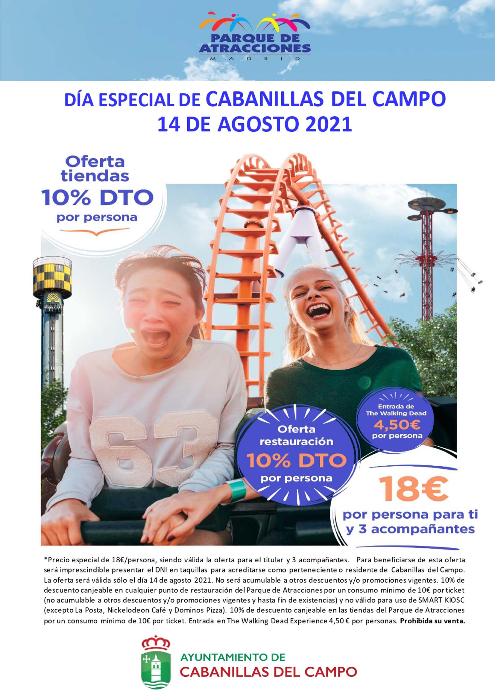 – Sábado 14 de agosto en el Parque de Atracciones, con entrada rebajada a 18 euros por persona, que puede utilizar cualquier vecino o vecina empadronado, y hasta tres acompañantes. Además también se faciiltan descuentos en sus tiendas y restaurantes.