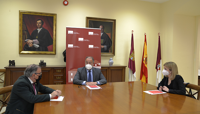 Julián Garde, rector de la Universidad de Castilla-La Mancha (UCLM); y Fernando Mora e Isabel Abengózar, presidente y portavoz del Grupo Parlamentario Socialista en las Cortes de Castilla-La Mancha, respectivamente, han apuntado a la institución académica como elemento de futuro para los jóvenes de la región durante la reunión de trabajo celebrada en el Rectorado.