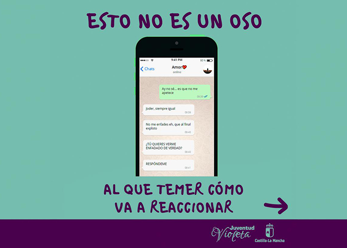 A través del Facebook, twitter e Instagram de Juventud Castilla-La Mancha han empezado a difundirse diferentes post con mensajes muy directos dirigidos a todo el colectivo juvenil en el que se incide en la idea de que, el control que se puede ejercer sobre una mujer joven nunca es un signo de amor sino, al contrario, es síntoma de violencia de género.