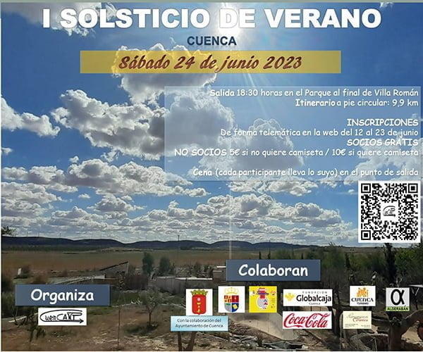 El sábado 24 de junio se desarrollará el I Solscticio de Verano en Cuenca capital. Actividad organizada por la Asociación Cultural “CuenCANP” dentro del Programa “Naturaleza y Patrimonio. 6ª edición”.