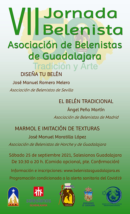 La Asociación de Belenistas de Guadalajara, dentro de los actos previstos para celebrar el 50 aniversario de su fundación, se encuentra la VII Jornada Belenista que se realizará en los salones parroquiales de la comunidad de Salesianos Guadalajara (parroquia de María Auxiliadora), el sábado 25 de septiembre de este año, con las oportunas medidas de prevención frente al Covid19. Como todos los años, y gracias al patrocinio del Ayuntamiento de Guadalajara, la inscripción es gratuita.