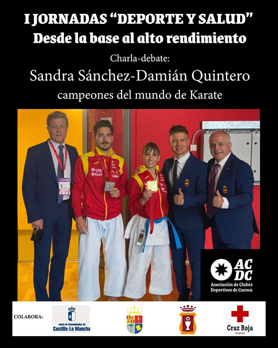 El próximo 7 de junio, los karatekas olímpicos Sandra Sánchez y Damián Quintero, así como el seleccionador español Jesús del Moral, estarán en Cuenca como invitados en la mesa ponente de las ‘I Jornadas de Deporte Base y Salud’. Esta iniciativa está promovida por la Asociación de Clubes Deportivos de Cuenca (ACDC) con la intención de que deportistas de alto nivel compartan su rutina diaria y cómo lo han hecho desde sus inicios hasta llegar a la élite.