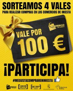 Tras los sorteos realizados en Cuenca capital, Tarancón y San Clemente, la Asociación lanza un nuevo sorteo en Iniesta y su comarca, de la mano de CEOE CEPYME Cuenca y de la Asociación de Empresarios de la Manchuela, ACEM, en el que se sortearán 4 vales de 100 euros para gastar en los comercios de esta localidad conquense.