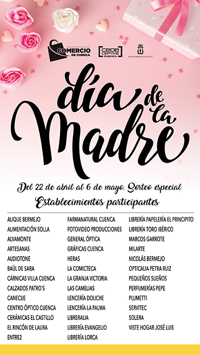La Asociación de Comercio de Cuenca y CEOE CEPYME Cuenca, en colaboración con la concejalía de Comercio del Ayuntamiento de Cuenca, sortearán vales de 50 euros para celebrar el Día de la Madre.