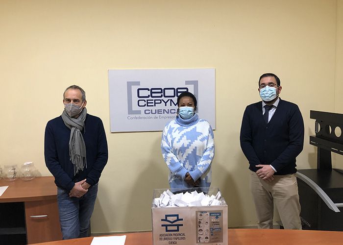 El sorteo se ha celebrado en la sede de CEOE CEPYME Cuenca y los encargados de extraer los tickets entre todos los compradores han sido el presidente de la Asociación de Libreros y Papeleros de Cuenca, Julián Saiz, y la concejal de Comercio del Ayuntamiento de Cuenca, Allady Rodríguez, que han estado acompañados del secretario de la Asociación de Libreros, Diego López.
