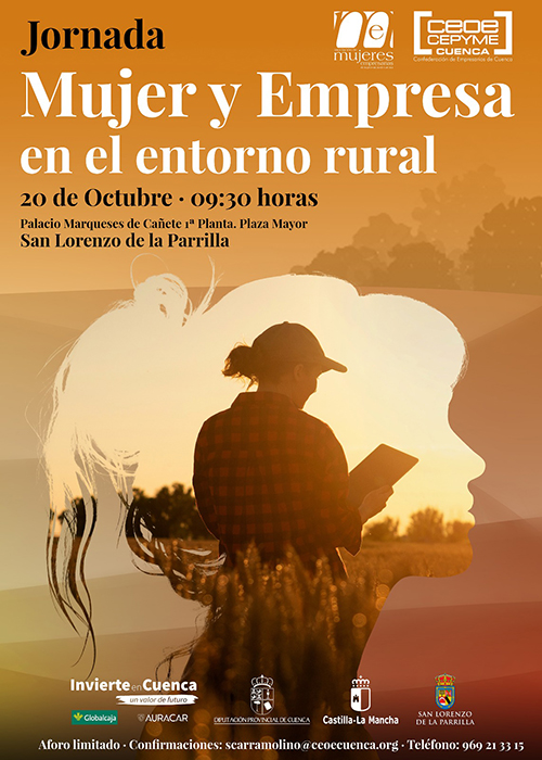 La Confederación de Empresarios de Cuenca y AMEP han organizado la jornada informativa el próximo miércoles en San Lorenzo de La Parrilla para que sirva al mismo tiempo para poner en valor el papel de las empresarias de nuestros pueblos a la vez que se les ofrecen ponencias de utilidad para su desarrollo profesional.