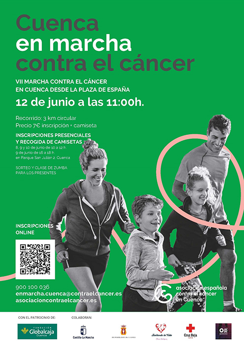 La Asociación Española Contra el Cáncer en Cuenca organiza la VII ‘Marcha contra el cáncer’ en esta ciudad el próximo 12 de junio a las 11:00 horas. El inicio de la marcha será en la Plaza de España de Cuenca y tendrá una distancia de 3 kilómetros, los cuales se podrán hacer andando o corriendo.