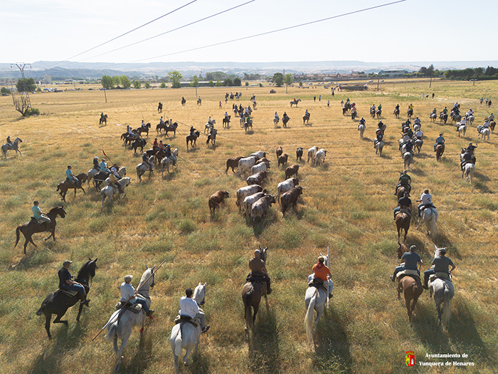 Este miércoles, 17 de septiembre, Yunquera de Henares ha vivido una nueva edición de su emblemática Bajada, una de las tradiciones taurinas más arraigadas y esperadas por los vecinos y vecinas de Yunquera. A las 10:30 horas, los seis utreros de la ganadería de «La Glorieta» partían desde Málaga del Fresno acompañados por bueyes y caballistas, rumbo a la plaza de toros «Las Traviesas».