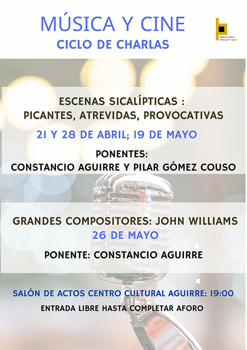 – Una última charla, el día 26 de mayo, sobre grandes compositores de bandas sonoras se centrará en la figura de John Williams (a cargo de Constancio Aguirre).