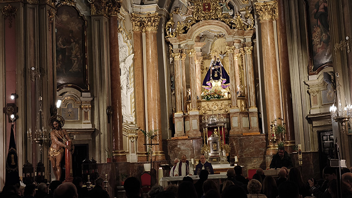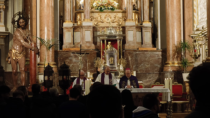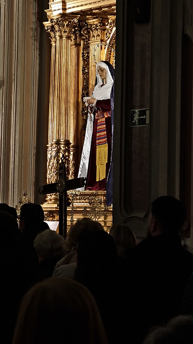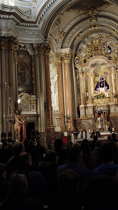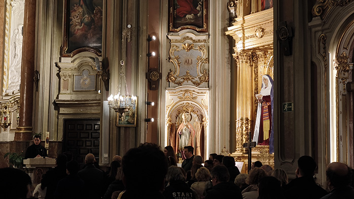 La borrasca Jana amarró el Vía Crucis. Tanto que tuvo que suspenderse la procesión por las calles de San Antón y llevarse a cabo en el interior de la iglesia, abarrotada de fieles, tras el oficio religioso presidido por el obispo, don José María Yanguas y concelebrado con don Ángel García y don Tomás Fernández.