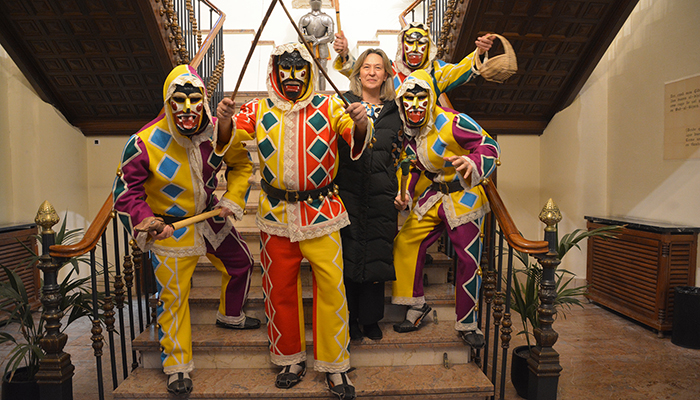 Los cuatro componentes de la botarga, el Manda, los mandaderos y la botarguilla, fueron recibidos en el ayuntamiento por la alcaldesa, Ana Guarinos, quien después, con algunos concejales y junto a decenas de vecinos con sus mascotas acompañaron el desfile, hasta la iglesia de Santiago, donde se procedía a la bendición de los animales.