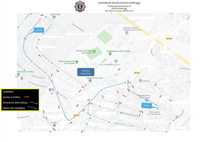 La Cabalgata de Reyes iniciará su recorrido a las 18:30 horas desde la calle Alcaldes de la Villa, recorriendo las principales calles del municipio hasta llegar a su destino final en la Plaza de la Constitución.