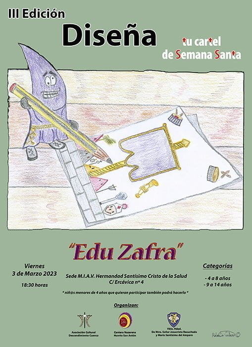 Los grupos jóvenes de la V. H. de Nuestro Padre Jesús orando en el Huerto (de San Antón) – Cantera Nazarena – y de la M. I. V. H. del Santísimo Cristo de la Salud (El Descendimiento) – Asociación Cultural Descendimiento Cuenca –, recuperan su concurso “Diseña tu Cartel de Semana Santa”, que contaba con dos ediciones antes del parón a causa de la pandemia.