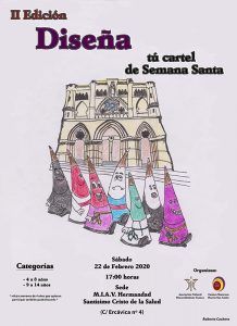Según explican desde la organización, tras el éxito obtenido en la primera edición, ambas asociaciones han decidido volver a convocar esta actividad dirigida a los niños y que tiene por objetivo fortalecer el sentimiento nazareno y los vínculos de hermandad a pocos días del inicio de la Cuaresma, así como contribuir al desarrollo de sus habilidades artísticas. Recuerdan que la actividad “está abierta a todos los niños nazarenos de la ciudad que deseen participar” y que se estructura en dos categorías: de 4 a 8 años para los más pequeños y de 9 a 14 años para los más mayores.