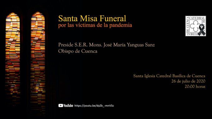 Esta jornada incluirá la celebración de la eucaristía en la Catedral de Cuenca a las 20:00 horas, que presidirá S.E.R. Mons. José María Yanguas Sanz, Obispo de Cuenca, que se ofrecerá por el eterno descanso de todos los difuntos y el consuelo y esperanza de sus familiares. Se dará gracias por todo el trabajo y el sacrificio realizado por tantas personas durante el tiempo de la pandemia y se rezará de una manera especial por los mayores y las residencias de ancianos. Esta celebración desea además pedir la luz, comunión y entrega fraterna ante la crisis social y económica provocada por la pandemia y el confinamiento.