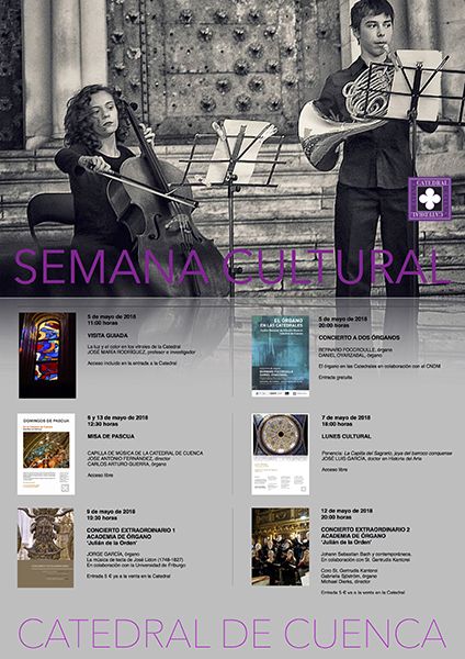 Las actividades culturales seguirán el miércoles, día 9 de mayo, en que a las 19:30 horas se tendrá un concierto de órgano a cargo de Jorge García, en colaboración con la Universidad de Friburgo (Instituto para el Estudio de las Religiones y el Diálogo Interreligioso) del que recibiremos más de 30 miembros. El concierto estará dedicado a la música de tecla de José Lidón (1748-1827). El concierto está organizado por la Academia de Órgano ‘Julián de la Orden’ y las entradas al precio de 5 € ya se encuentran a la venta en la Catedral y el Museo Tesoro.