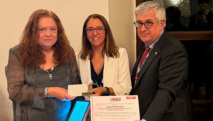 Joaquín Aldás Manzano, catedrático de Comercialización e Investigación de Mercados de la Universitat de València, ha sido el encargado de entregar el reconocimiento, realizando un repaso por la trayectoria académica y profesional de Esteban. La galardonada ha estado acompañada por el presidente del comité organizador de AEMARK 2024, Juan Antonio Mondéjar, y la presidenta de AEMARK, Natalia Rubio Benito.