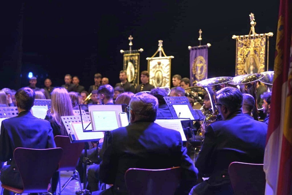 ‘Guadalajara cofrade’, la marcha de la Semana Santa de la ciudad, compuesta y dirigida hoy por el teniente coronel Abel Moreno, se ha escuchado esta tarde por primera vez en un acto solemne en el Teatro Auditorio Buero Vallejo, interpretada por la banda de música sevillana ‘Virgen del Castillo’, de Lebrija,