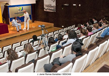 La sesión se iniciaba con una escenificación que pretendía analizar cómo mejorar la comunicación en dicha situación para detectar las necesidades del paciente y satisfacerlas, explicarle los procedimientos o resolver dudas y miedos.