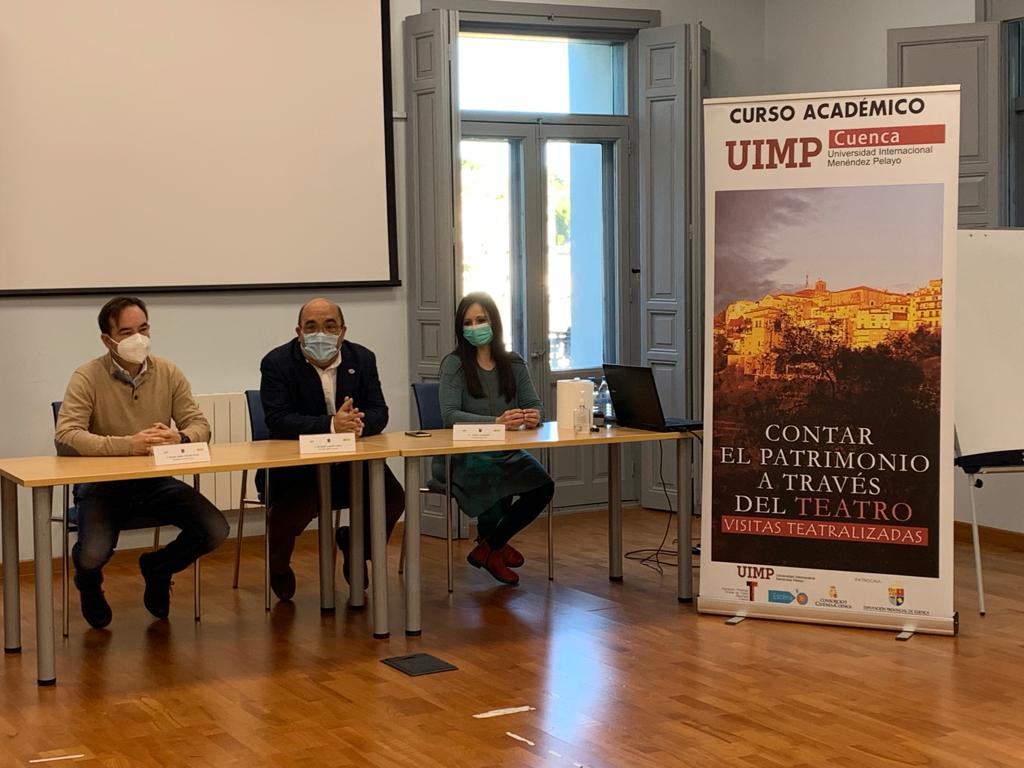 La Diputación de Cuenca es uno de los patrocinadores junto al Consorcio Ciudad de Cuenca del curso académico que imparte la Universidad Internacional Menéndez Pelayo con el título ‘Contar el patrimonio a través del teatro’ que está organizado por la asociación Agrúpate y que sirve de continuación de otra acción formativa que también fue impartida en este mismo espacio. El curso, que cuenta con 22 alumnas y alumnos inscritos, ha comenzado esta mañana, está impartido por Santiago Pérez, y se va a prolongar durante los próximos fines de semana y que tratará el patrimonio material, pero también el patrimonio etnográfico y gastronómico.