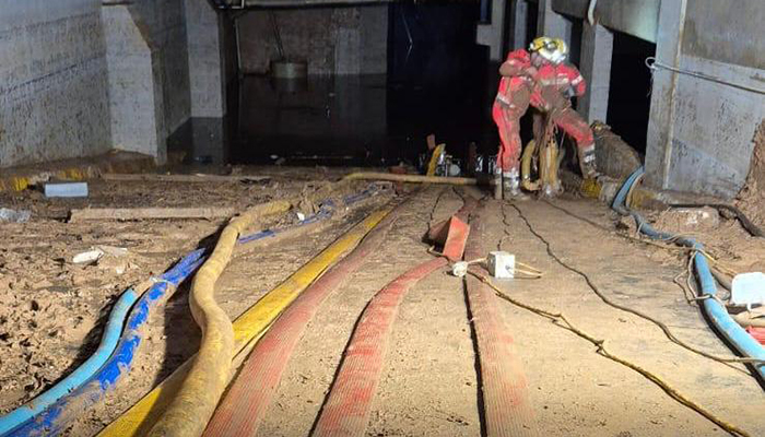 La dotación de Bomberos del Ayuntamiento de Cuenca que se desplazó el lunes a Sedaví, relevando a la que estaba allí operando, ha continuado con labores de limpieza y achique de agua, ahora en un parking de centro comercial del municipio valenciano.
