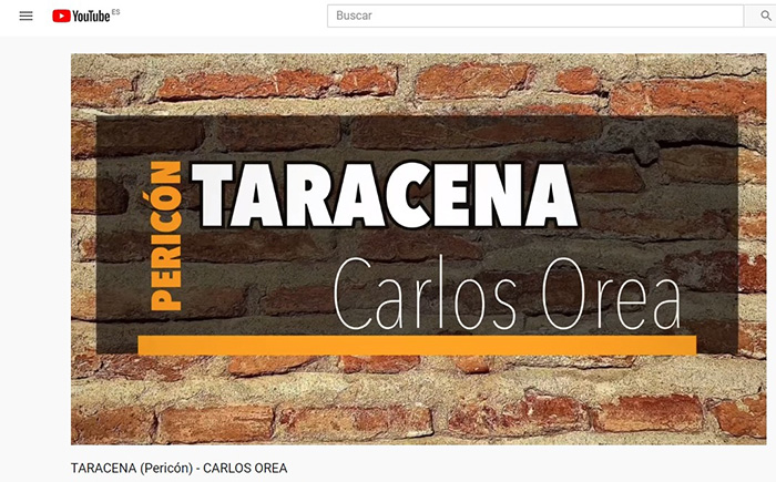 La Escuela de Folklore de la Diputación de Guadalajara difunde en las redes sociales la obra musical de Carlos OreaEn el enlace TARACENA (Pericón) – CARLOS OREA (https://www.youtube.com/watch?v=mZAFpiCaX8E) se puede  descargar esta obra que tiene una duración de 2:32 minutos y se presenta en forma de vídeo musical ilustrado con sugerentes imágenes de esta localidad de nuestra provincia, todo ello gracias al brillante trabajo realizado por el citado  Eduardo del Castillo no sólo en la parte musical.