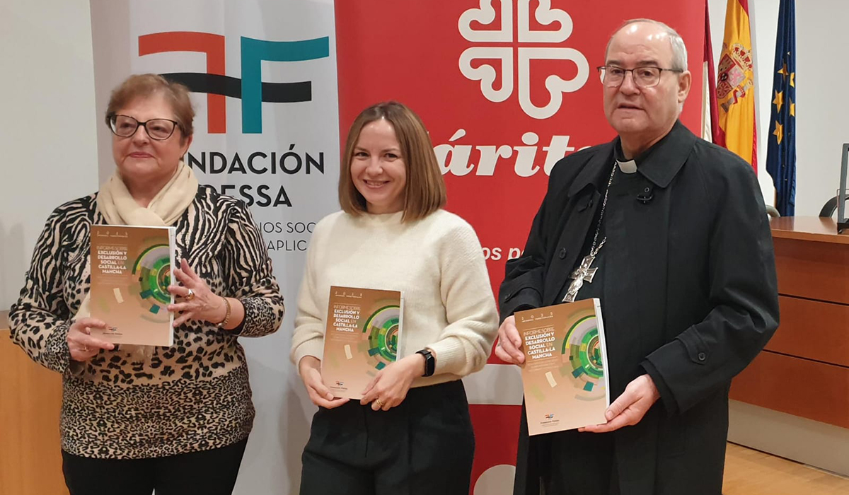 Hoy se ha presentado en la Biblioteca Regional, en Toledo, el  IX INFORME SOBRE EXCLUSIÓN Y DESARROLLO SOCIAL EN CASTILLA-LA MANCHA, una presentación que ha corrido a cargo del arzobispo de Toledo, D. Francisco Cerro Chaves, la presidenta de Cáritas Castilla-La Mancha, Rosa García, y la técnico de la Fundación de Estudios Sociales y Sociología Aplicada (FOESSA), Marina Sánchez.