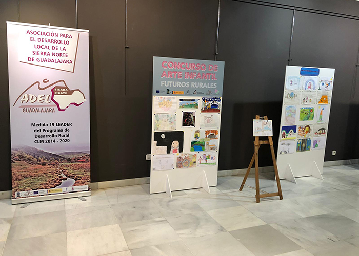 La exposición muestra algunas de las casi 300 obras de arte infantil presentadas al concurso ‘Futuros Rurales’, convocada por el Grupo de Desarrollo Rural ADEL Sierra Norte.