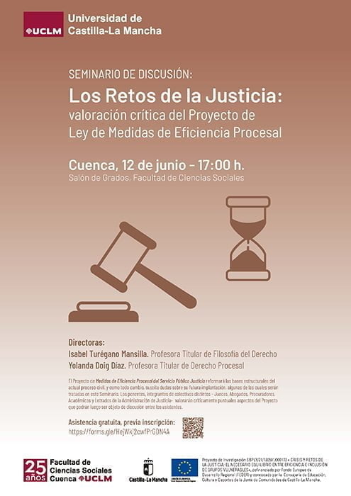 Dirigido por las profesoras de la UCLM Yolanda Doig e Isabel Turégano, el seminario se encuadra en el Proyecto de Investigación “Crisis y retos de la Justicia: El necesario equilibrio entre eficiencia e inclusión de grupos vulnerables”.