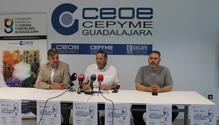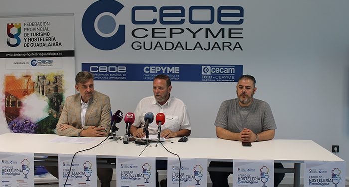 Juan Luis Pajares, presidente de la Federación provincial de Turismo y Hostelería de Guadalajara, integrada en CEOE-CEPYME Guadalajara, ha presentado esta mañana, junto con el concejal de Turismo del Ayuntamiento de Guadalajara, Fernando Parlorio y Mario de Lucas, vicepresidente de la Federación, el I foro de hostelería de la provincia de Guadalajara, organizado por la propia federación en colaboración con el ayuntamiento capitalino. Un punto de encuentro para los profesionales del sector donde además de conocer las últimas tendencias del sector, podrán compartir un momento distendido tras más de dos años malos a causa del COVID-19.