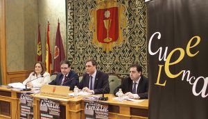 El alcalde de Cuenca, Ángel Mariscal; el presidente de la Diputación, Benjamín Prieto; la concejal de Cultura, Marta Segarra y el diputado provincial de Cultura, Francisco Javier Doménech han presentado la edición de este año en el Salón de Plenos del Ayuntamiento.
