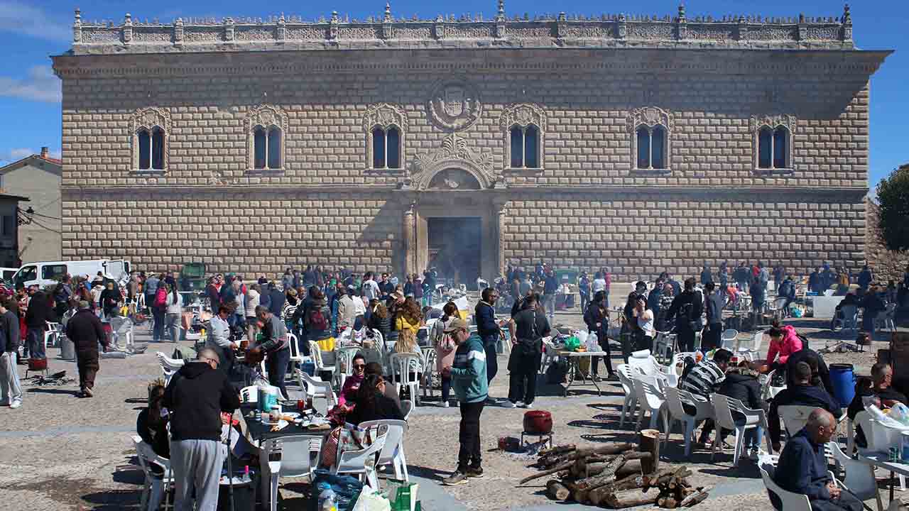 Grupos de amigos, peñas, visitantes y forasteros se congregaron desde primera hora de la mañana del sábado 28 de marzo frente al Palacio de los Duques de Medinaceli, primer edificio de estilo renacentista construido en España y declarado BIC en 1931, para ir caldeando un ambiente festivo que acogería guisos que, condición sine qua non, tendrían que realizarse en base a la legumbre, sin elaboraciones previas, siguiendo la tradición de la zona y cocinados al fuego de la leña provista por la organización.
