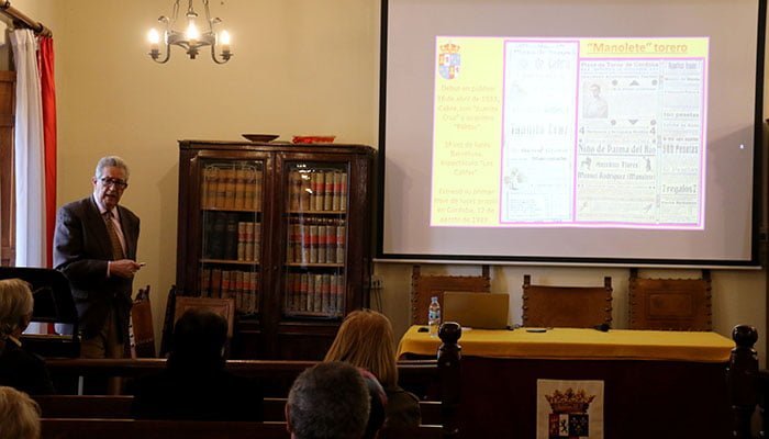 Manuel Rodríguez murió a consecuencia del ejercicio de su profesión, por lo que su figura ha adquirido la condición de mito. Es el torero sobre el que más se ha escrito puesto que, además de ser una gran figura del toreo, hay una serie de connotaciones en torno a él, sobre su vida, su manera de comportarse, de actuar y de ser, que lo hacen aún más mediático. “Fue una persona diferente y distinta a lo que era habitual en España”, opinó el ponente. Era lo que hoy llamamos un influencer. Marcaba tendencia. Se le ocurrió vestir unos zapatos bicolor, blancos y negros, y los puso de moda, de la misma manera que un modelo de gafas de sol, que se terminaron conociendo como manoletinas”, contó Melguizo.
