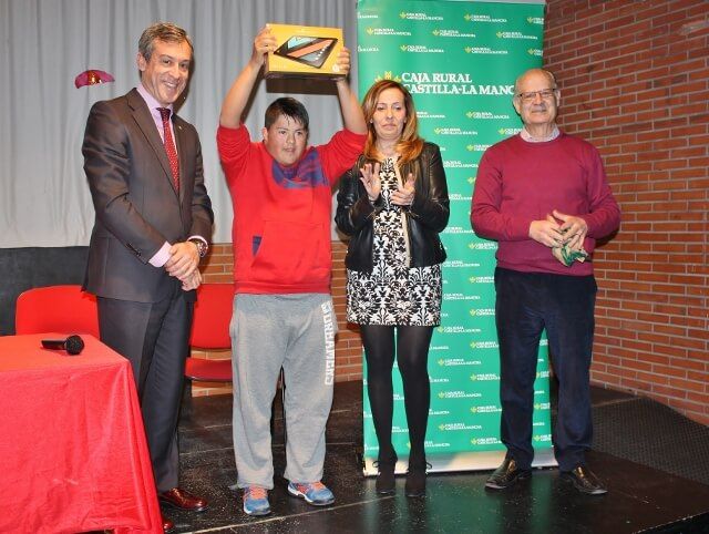 El presidente de la Fundación, Javier López Martín, entregó una Tablet al alumno como ganador de este certamen, cuyo dibujo tuvo el honor de convertirse en la imagen de la postal navideña que Caja Rural Castilla-La Mancha utilizó para felicitar la Navidad a sus socios y clientes.