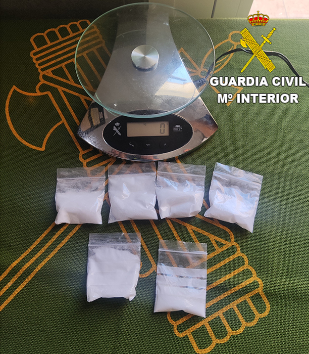 Debido a la situación, y ante la sospecha que las sustancias halladas pudieran ser estupefacientes, se trasladó el vehículo y a sus tres ocupantes al acuartelamiento de la Guardia Civil de Saelices, lugar donde se realizó el droga-test al polvo blanco que había en el interior de las bolsas, dando positivo como ketamina-cocaína; procediéndose a la detención de los tres varones, todos de nacionalidad china, de 23, 24 y 25 años de edad como supuestos autores de un delito contra la salud pública.