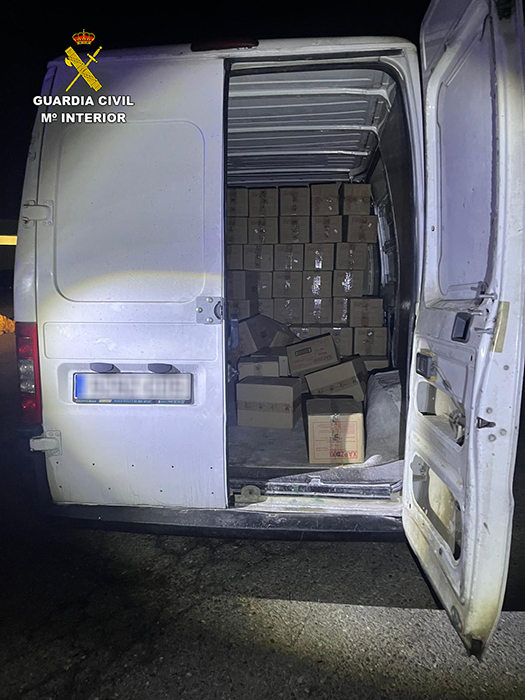 Una vez identificado el conductor, fue interrogado por la carga que transportaba, aduciendo que se trataba de paquetería, pero no pudo aportar ningún tipo de documentación que acreditara su lícita procedencia. También se localizó en el interior de la furgoneta una cizalla de grandes dimensiones.