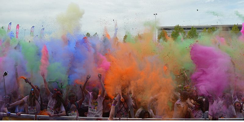 Los polvos de colores empleados en los eventos de Holi Run España están elaborados con harina de maíz y colorantes naturales. No son tóxicos ni producen reacciones alérgicas y están aprobados para su uso por la Unión Europea.
