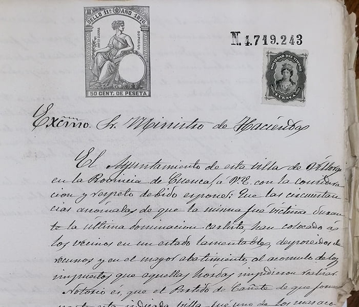 Así, el ayuntamiento se dirigió al ministro de Hacienda, exponiendo los hechos, consecuencia de los que se solicitaba el perdón de dicho gravamen por las circunstancias anómalas de que la villa fue víctima durante la última dominación carlista, han colocado a los vecinos en un estado lamentable, desposeídos de recursos y en el mayor abatimiento, al acúmulo de los impuestos que aquellas hordas impidieron realizar.